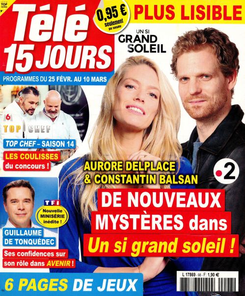 Télé poche et Télé 15 jours font des révélations sur « Un si grand soleil ».Télé Loisirs et Télé câble sat parlent du retour de « Top chef ».Télé Star est dans les coulisses des Enfoirés.Télé 7 jours interviewe Amel Bent.Télé 2 semaines pose des questions à Sophie Davant et Caroline Margeridon.